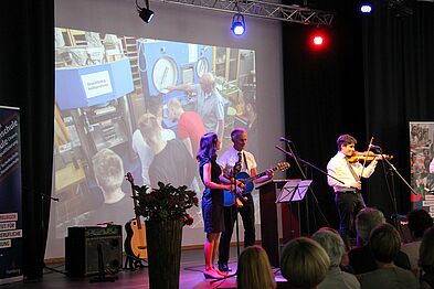 Hannes Frisch, Alexander Mottok und Kersten Reimann haben als Band „frank und frei“ zwei weitere Songs gespielt, Karin Hechler ist mit dem Wahlpflichtkurs Musik aufgetreten, Die Klasse SP 15-1 hat das Mensa-Team beim Catering unterstützt und Simone Jasper hat gemeinsam mit Reinhard Damm (stellv. Geschäftsführer HIBB) die Gäste begrüßt.